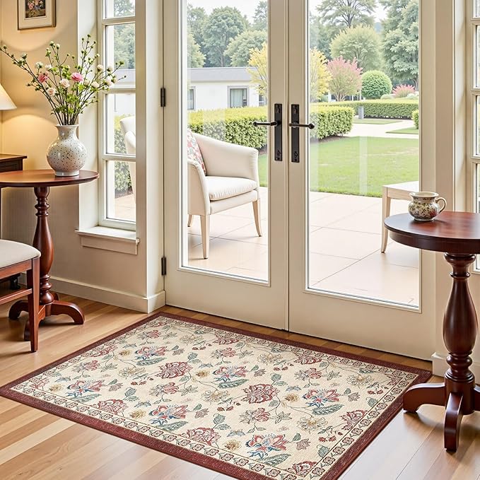 - Freshen Entryway & Kitchen: Perfectly sized to welcome guests at doorway or brighten cozy kitchen corner, this compact rug brings vintage floral charm without adding bulk. Its slim, easy-care design fits snugly in busy spots, making everyday life a little more stylish and effortless.