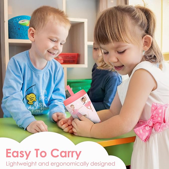 Kid Insulated Stainless Steel Tumbler with Silicone Straw, 12oz Sippy Cup for Kids (Pink Ballerina)