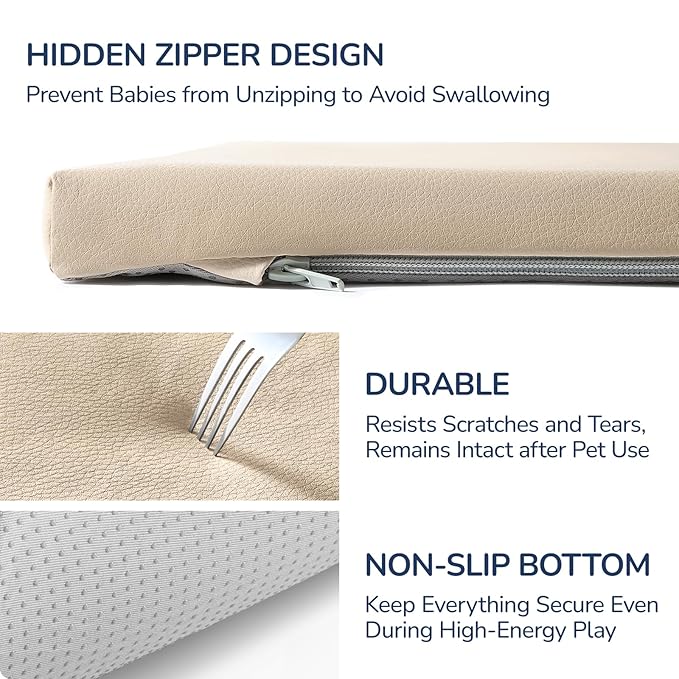 - Effective Cushioning & Ensure Safety: The baby play mat is made of 1.3'' thickened slow-rebound memory foam, which can quickly disperse the impact force when the baby falls or collides (such as head or knee hitting the ground), ensuring the baby's safety. The cushioning effect is better than traditional EPE/EVA foam pads.