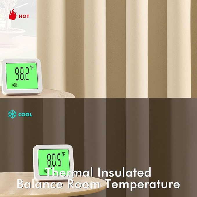 - High-Quality Material: Crafted from high-quality 225GSM polyester fabric, these curtains offer enhanced durability and elegant drape. The soft blackout material features triple-layer weaving technology, with a middle layer of black yarn for superior light blocking and privacy. Both sides feature the same refined color, ensuring a seamless look that elevates your home’s aesthetic with understated sophistication
