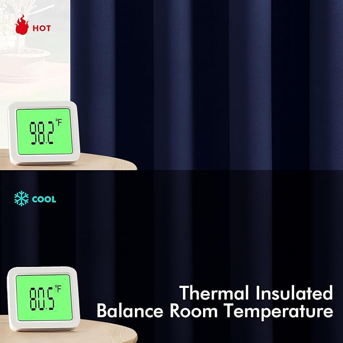 - High-Quality Material: Crafted from high-quality 225GSM polyester fabric, these curtains offer enhanced durability and elegant drape. The soft blackout material features triple-layer weaving technology, with a middle layer of black yarn for superior light blocking and privacy. Both sides feature the same refined color, ensuring a seamless look that elevates your home’s aesthetic with understated sophistication