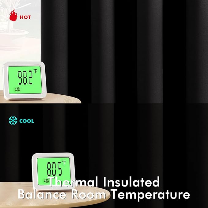 - High-Quality Material: Crafted from high-quality 225GSM polyester fabric, these curtains offer enhanced durability and elegant drape. The soft blackout material features triple-layer weaving technology, with a middle layer of black yarn for superior light blocking and privacy. Both sides feature the same refined color, ensuring a seamless look that elevates your home’s aesthetic with understated sophistication