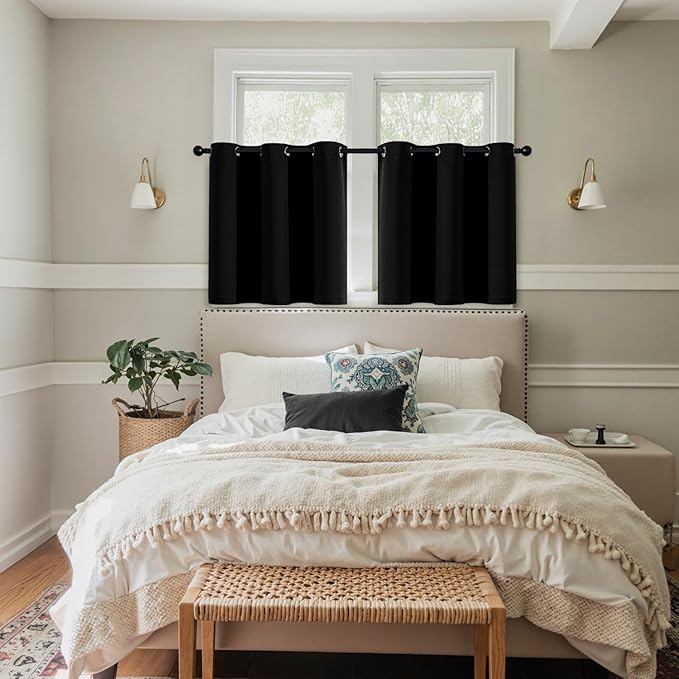 MIULEE Short Curtains for Windows - Black Blackout Half Window Curtains Thermal Insulated Drapes for Kitchen Bedroom Bathroom Grommet Small Basement Tiers Halloween Decor W40 x L36 Inch 2 Panels