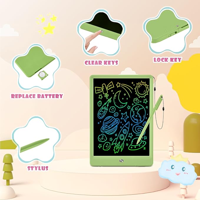 - High-Quality Kids Birthday Gifts: The doodle board adopts a 10-inch LCD colorful screen, which is without radiation, no glare, safe and comfortable even use for a long time. Durable material can be used repeatedly for a long time