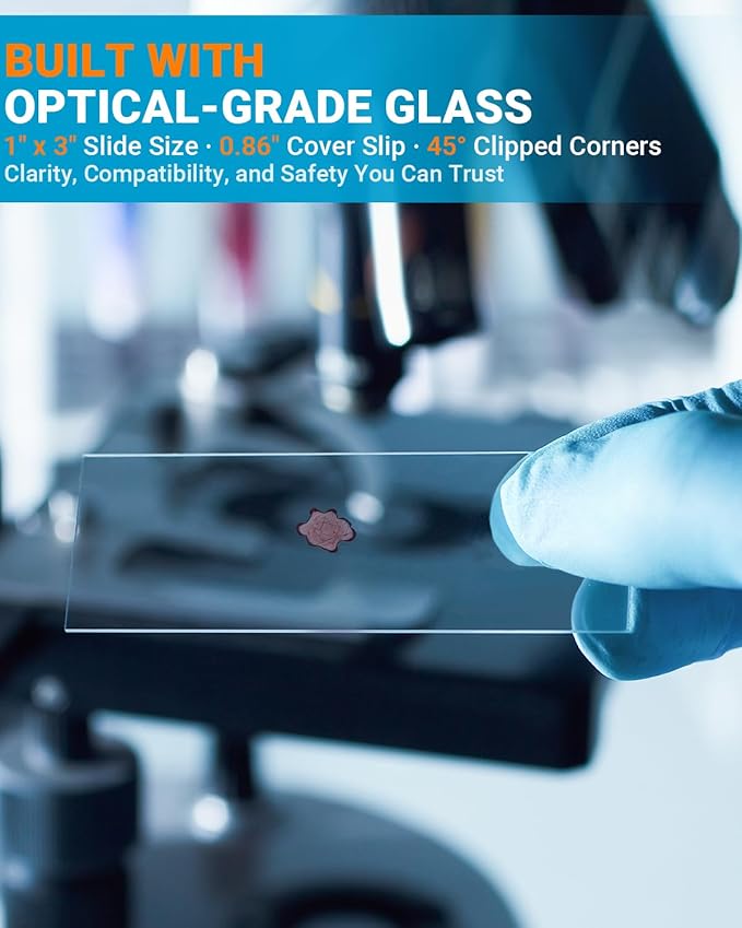 - Complete Microscope Slide Kit:Includes 50 blank glass slides for microscope and 100 cover slips for microscope slides. Perfect for biology labs, science fairs, and school experiments—an all-in-one solution for learners of any level