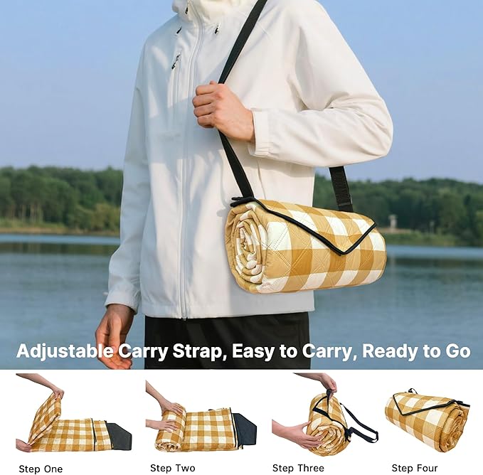 - Water & Dirt Resistant: Our camping blanket is made for outdoor conditions. The top layer is water-repellent and stain-resistant. Just shake off drinks, dirt, or sand after use. The waterproof base blocks moisture and insulates against heat or cold from the ground, keeping you dry and comfortable at the park, beach, campsite, or backyard.