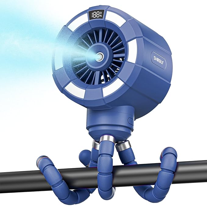 - High-Capacity Battery & 14H Cooling:Equipped with 6000mAh rechargeable battery, this stroller fan provides up to 14 hours runtime on low misting mode (1st gear). Fully charges in 4 hours via 5V/1A input, perfect for all-day outdoor adventures.