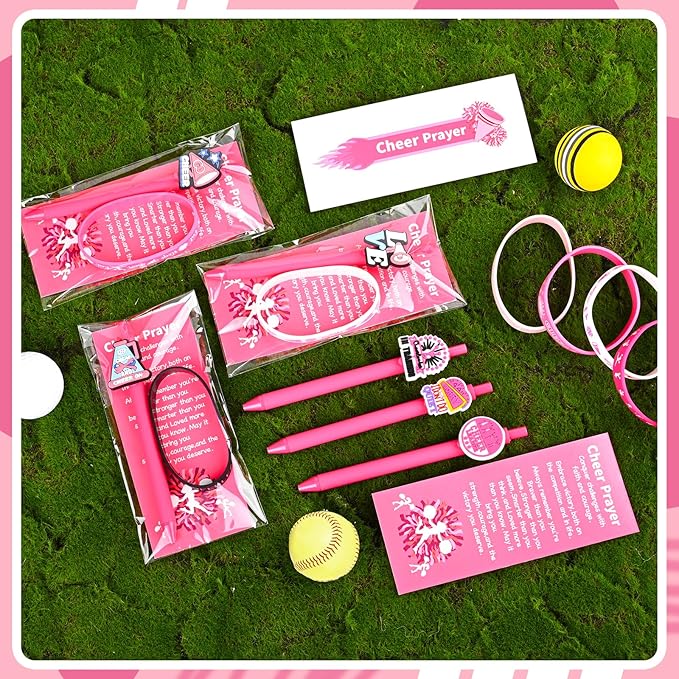 - Complete Cheerleader-Themed Party Gift Set: Our cheerleader-themed decorations are thoughtfully designed with the specific needs of cheerleader enthusiasts in mind. This set includes 24 cheerleader-themed ballpoint pens, 24 bookmark cards, and 24 silicone bracelets, all featuring motivational cheerleader-related messages to uplift spirits. To make this product even more appealing, we’ve added a transparent OPP bag to the packaging, making it a perfect gift for any occasion.