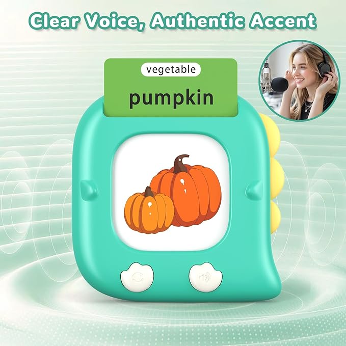 - [ Easy to Use ] Turn on the switch, put the card into the card readerโs slot, and the card reader will pronounce the words. And you can repeatedly read and learn again and again by pressing the repeat button. It can be used independently by toddlers ages 2 and up.