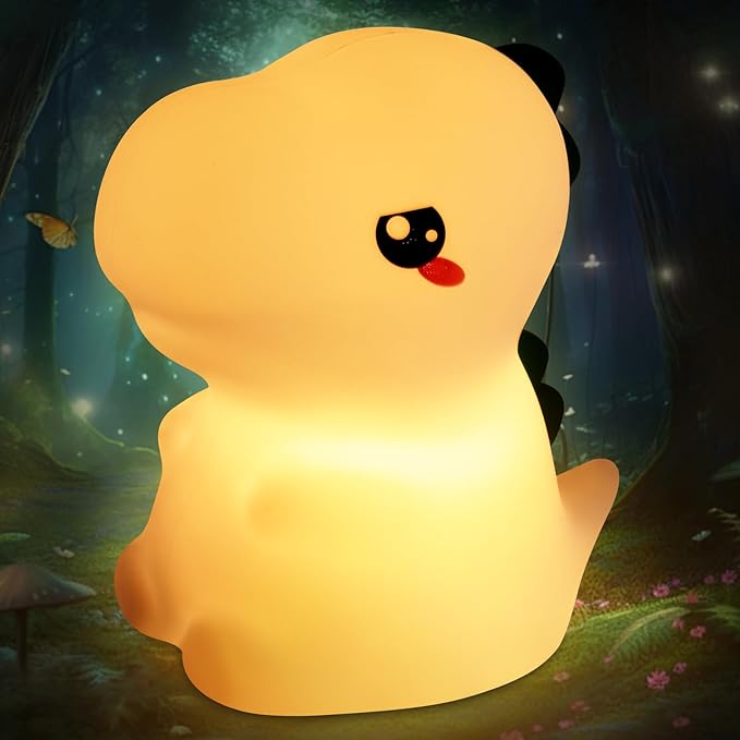 Night Light for Kids, 7 Color Changing BPA-Free Silicone Lamp with Touch Control, Eye Protection, Rechargeable Battery, Soft & Safe Nursery Lamp for Boys & Girls (Dinosaur)