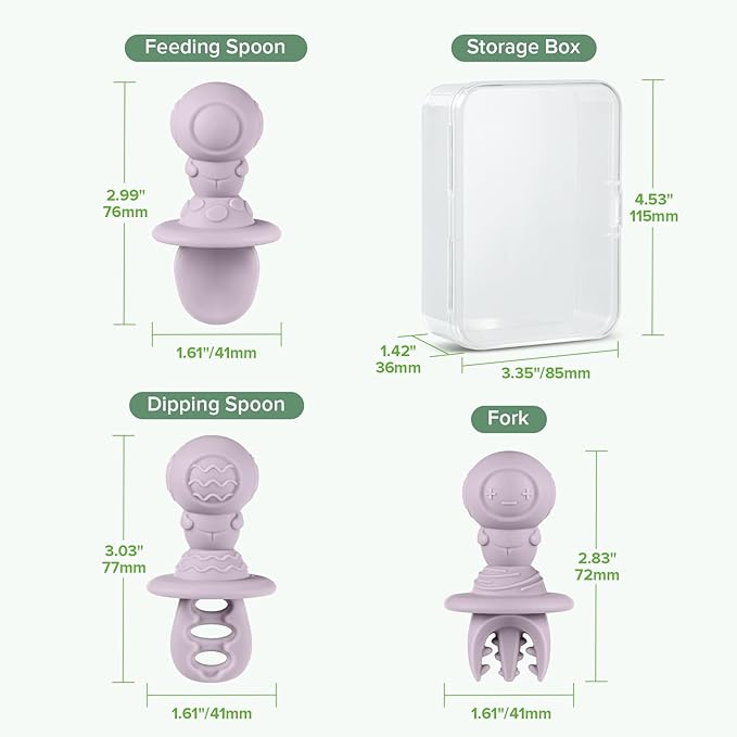 - 𝐈𝐍𝐒𝐏𝐈𝐑𝐄𝐃 𝐁𝐘 𝐒𝐏𝐀𝐂𝐄, 𝐃𝐄𝐒𝐈𝐆𝐍𝐄𝐃 𝐅𝐎𝐑 𝐋𝐈𝐓𝐓𝐋𝐄 𝐇𝐀𝐍𝐃𝐒:These baby-led weaning supplies feature astronaut-shaped handles that are not only adorable but also designed for tiny hands, making it easier for little ones to grip, control, and enjoy every bite. The fun space-themed design turns mealtime into an exciting feeding adventure.