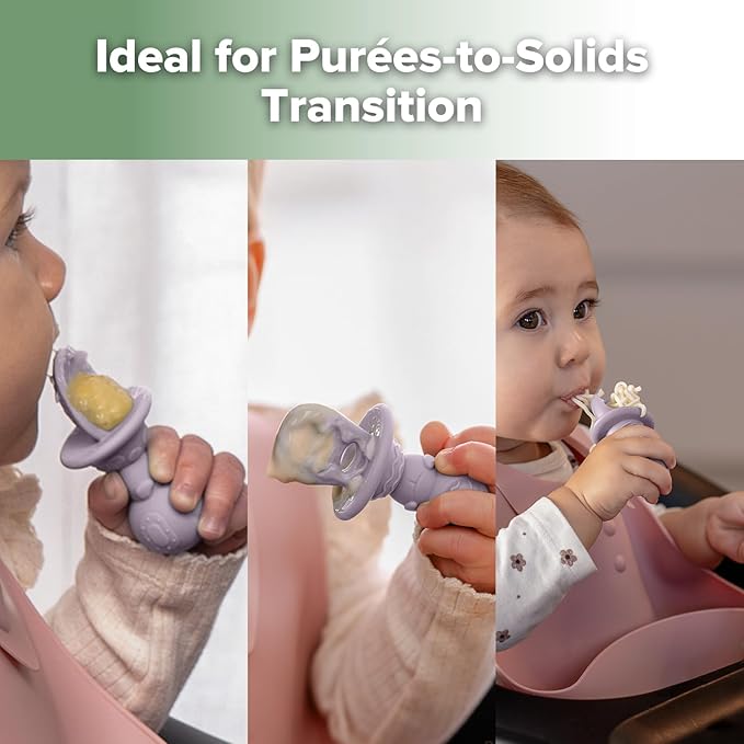- 𝐓𝐄𝐄𝐓𝐇𝐈𝐍𝐆-𝐅𝐑𝐈𝐄𝐍𝐃𝐋𝐘 & 𝐆𝐄𝐍𝐓𝐋𝐄 𝐎𝐍 𝐆𝐔𝐌𝐒:This soft silicone baby feeding set prevent irritation, making them ideal for teething babies as they transition to solid foods.