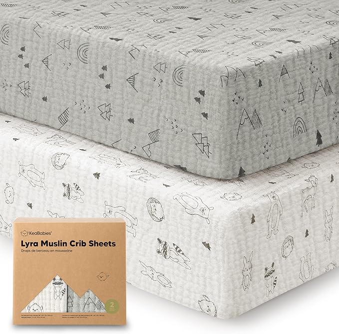 - Lyrically Soft & Breathable - KeaBabies Lyra Muslin Organic Cotton Crib Sheets Fitted keep your baby cozy all night. Exceptionally breathable crib sheets for all-seasons, these toddler sheets soothe baby like a lullaby for peaceful, restful sleep.