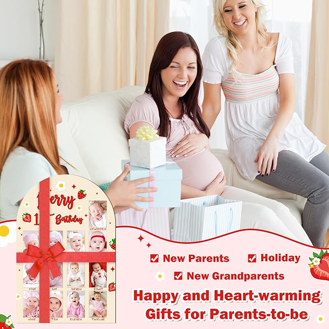 - 3D STRAWBERRY DESIGN: Document baby's precious first year with our adorable strawberry wooden photo display board! Made from premium thick wood for lasting durability. Perfect as a nursery decor or as the highlight of your baby's first birthday celebration, this cute milestone board turns fleeting moments into timeless memories you'll treasure forever.