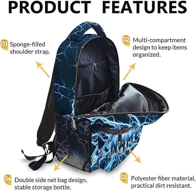 - COOL LIGHTNING BACKPACK DESIGN: In addition to practical use, this schoolbag is also printed with vivid patterns, and we also offer customization options. Click on "Customize Now" to add personalized customized information to your backpack