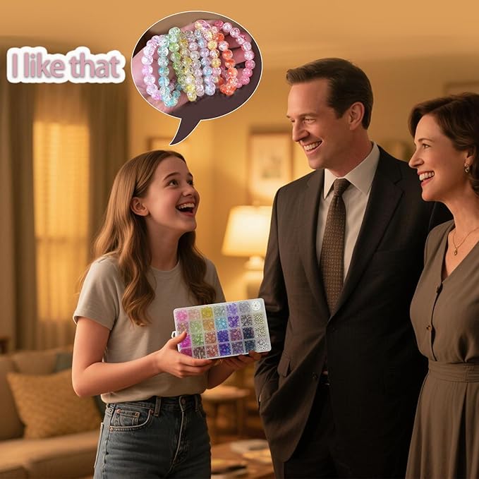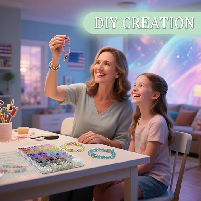 - GREAT GIFT: Our crystal glass beads bracelet making kit, featuring delightful glass bead charms, is an ideal present for those with a passion for handmade jewelry. It makes an excellent gift for kids, girl teens, and even adults eager to create their own jewelry pieces or craft jewelry for friends. The kit not only helps kids divert their attention from video games but also significantly enhances their creativity. Engaging in fun parent - child activities with this kit strengthens the bond between parents and kids.It serves as a wonderful gift for various occasions such as birthdays, Thanksgiving, Valentine's Day, Mother's Day, and Christmas.