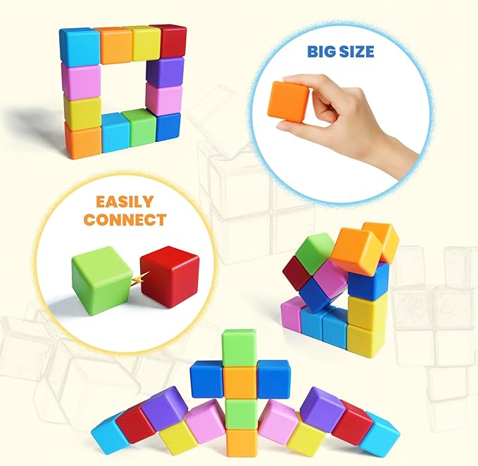 - Big Size Building Blocks: Each cube measures 1.65 inches per side—sized appropriately for easy grasping by toddlers and safe play