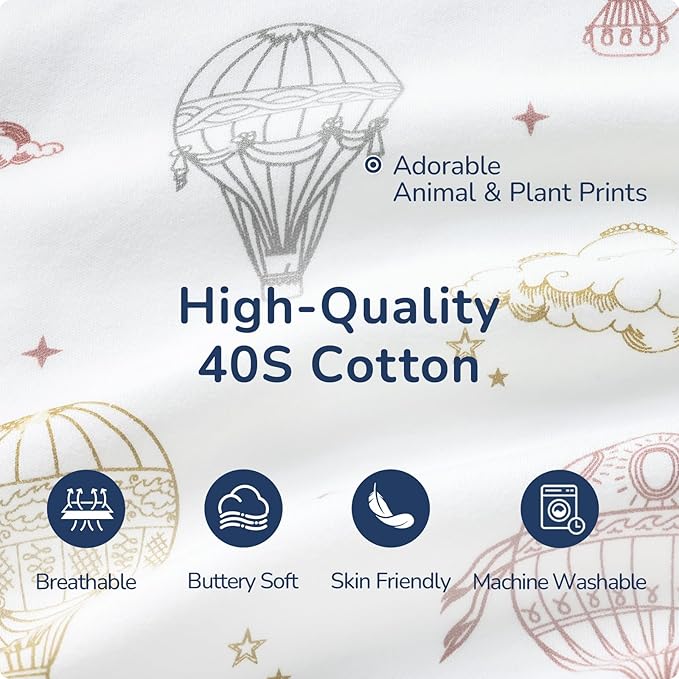 Baby Sleep Sack 18-24 Months, Cotton Detachable Long Sleeve Sleep Sack, 1.0 Tog Toddler Sleeping Sack with Temperature Strips, 2-Way Zipper Wearable Blankets for Newborns, Hot Air Balloon