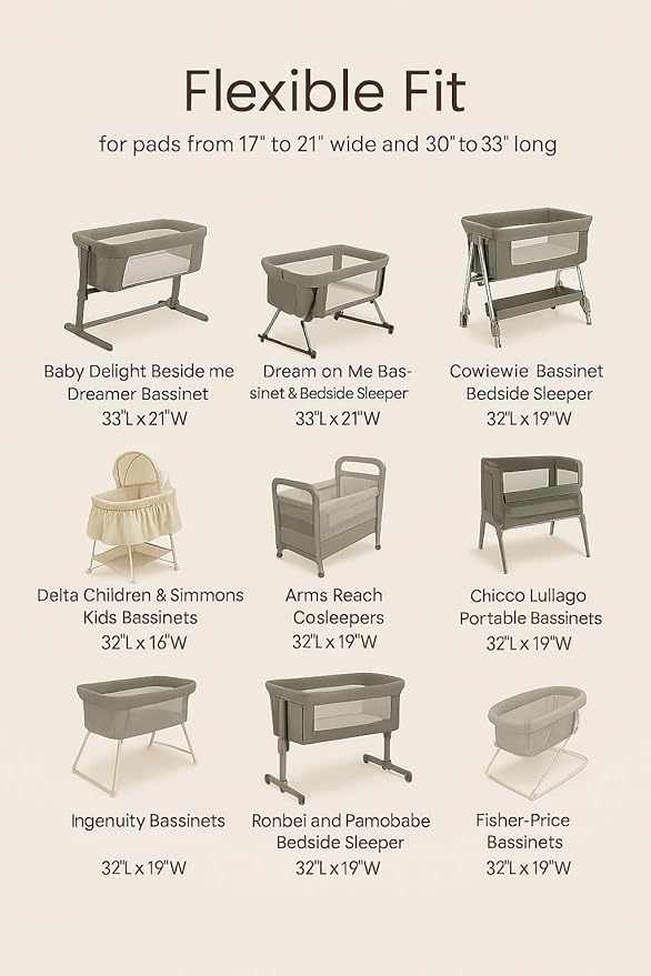 - Secure 33×20 fit with deep pocket: Designed for 33×20 inch bedside sleeper pads with a 4" deep pocket and full elastic hem. The snug fit stays flat without bunching or shifting, giving your baby a safe and stable surface to rest, roll, and stretch freely.