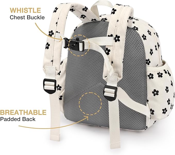 - 【Comfort Meets Safety】Built with breathable padding and ergonomic straps, this kids backpack reduces pressure on little shoulders. A chest buckle with a built-in whistle adds playful functionality — it’s a fun feature for daily use and could provide help in unexpected situations