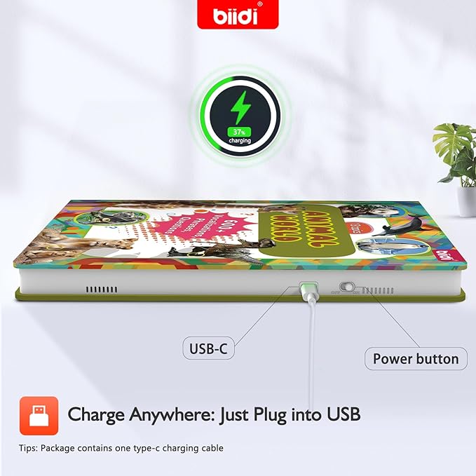 - DURABLE DESIGN AND TYPE C: Carefully bound with tear-proof and waterproof pages, rounded corners are safer for children! The interactive book weighs only 400g and comes with a simple and convenient TYPE-C charging port, making it easy to carry and charge when travelling! Up to 6 hours of continuous use at medium volume!