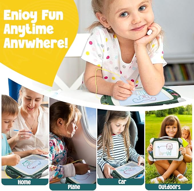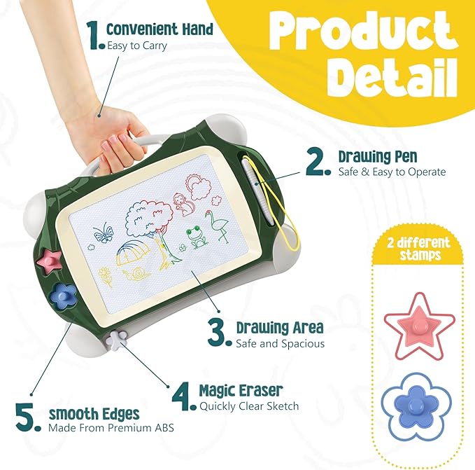 - Children's Early Education Toys: By drawing, writing and playing games to inspire your kid's creativity and imagination in magnetic drawing board. The drawing board contributes to exercising kid's hand-eye coordination, the perception ability and imagination ability.