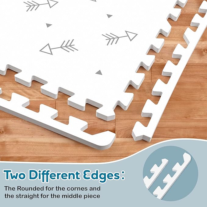 - ARROW PATTERN DESIGN: The arrows design adds a fun and playful touch to any nursery, making it a perfect spot for your little one to grow and play, making it a pleasant place for your little ones to interlock foam floor tiles. Made of soft high-quality materials, the non slip bottom ensures its stable placement, making it provides a safe and calming play area for your baby or toddler.