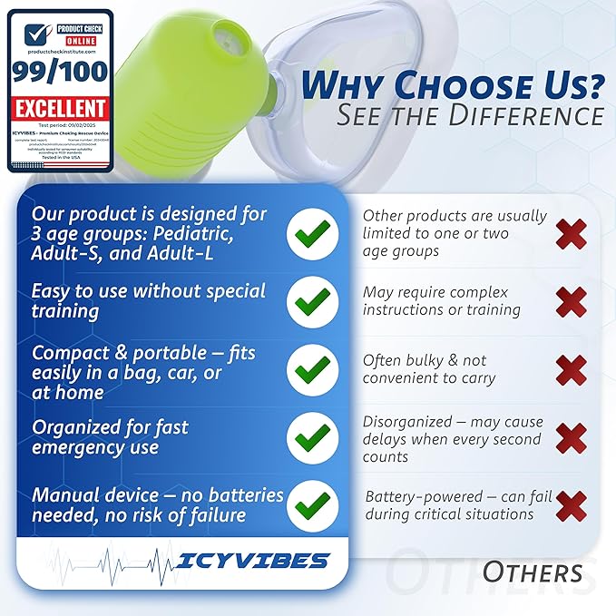 Premium Choking Rescue Device for Kids and Adults – Portable Suction Tool Airway Clear Travel & Home Safety Kit for Emergency Use Includes 3 Sizes for Baby Essential First Aid Anti
