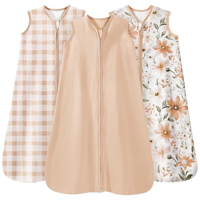 Baby Sleep Sack 0-6 Months Summer Sleep Sack 3 Pack 100% Cotton Baby Sleep Bag Wearable Blanket for Newborn Infant Orange Flowers & Plaid