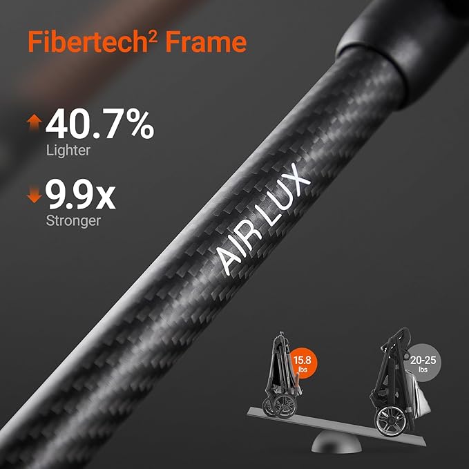 Air Lux Baby Stroller with Carbon Fiber Frame, One-Hand Fold & Reversible Seat, Magnetic 5-Pt Harness, Car Seat Adapter, 15.8lbs, Cinder