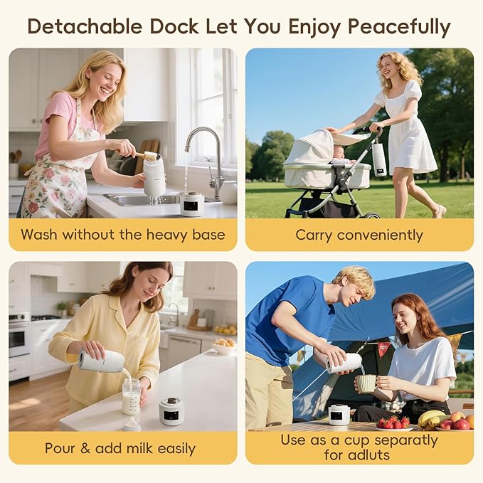 - Detachable Design: Detachability make this on the go bottle warmer truly versatile and portable for travel flights or weekend getaways. Portable water warmer is compact and lightweight, it easily fits into a handbag or diaper bag, enjoy the freedom of a cord-free design.