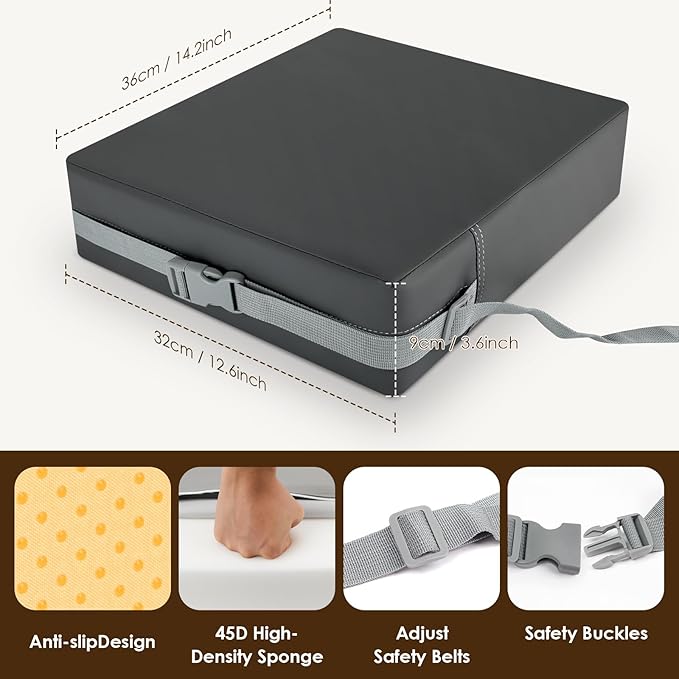 - ✅【High-Density Support Foam - Long-Term Comfort】:Built with a 50D high-density foam, this chair booster seat for toddler 2-12 retains its shape and density even with long-term use,supporting your child well during mealtimes. Whether used as a toddler seat cushion, a kid booster seat for dining table, or even for floor play, your little one stays comfy and secure.Size:14.2 x 12.6 x 3.6 + 14.2 x 14.2 x 2 inch, total 2 pcs