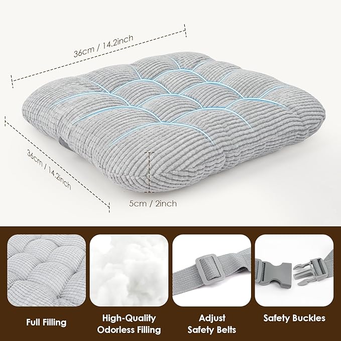 - 🔒【2 Adjustable Straps + Non-Slip Bottom for Safety】:Equipped with 2 Adjustable Safety Buckles and a non-slip bottom,at the same time, the length of the bottom seat belt is appropriately increase, so the cushion can be better fixed on the most dining chair.This booster seat for chair stays firmly in place—no sliding forward or sideways. Perfect as a booster chair for dining table, booster chair for toddlers 2-12, or booster seats for kitchen chairs at home or while traveling.