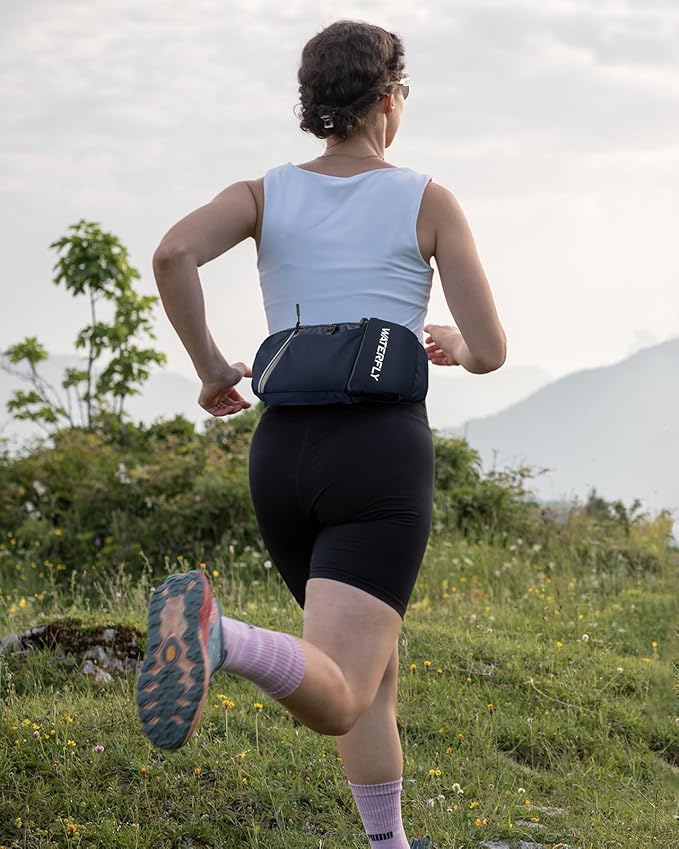 WATERFLY Fanny Pack Waist Bag: Hiking Water Bottle Holder with Strap Waist Pack for Women Men Hydration Hip Packs for Running Walking Traveling-Navy Blue