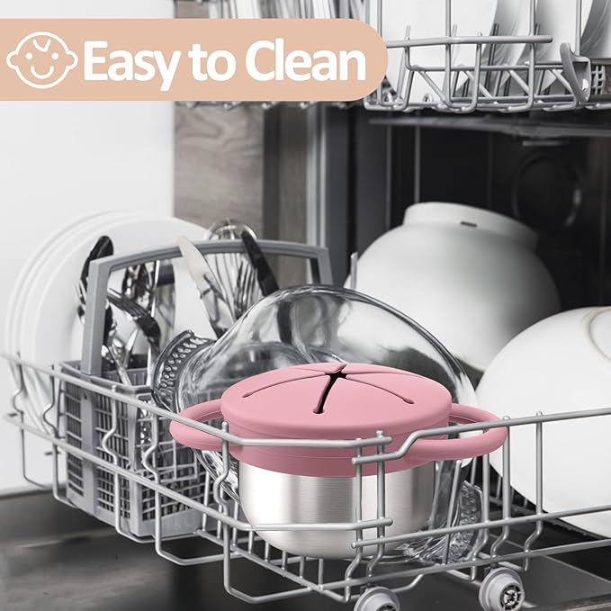 - Easy to Clean&Built to Last - Snack containers crafted from premium 304 stainless steel and food-grade silicone,each cup holds about 12 oz , these snack catchers are freezer-safe. Toddler snack containers are stain-proof, and dishwasher safe. Built to handle drops, throws, and every snack-happy moment life brings