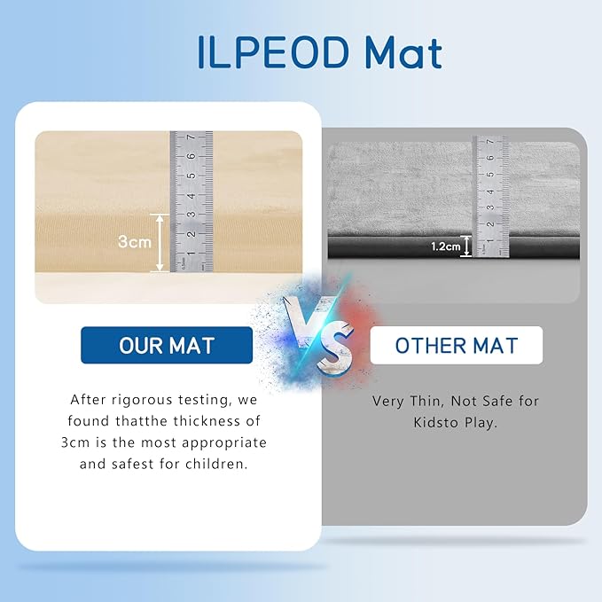 - 🌟HOW TO CARE FOR YOUR MAT:When you open the package,it may be wrinkled,very flat and inelastic.Don't fret - this is normal! As long as it is left for 3-5 days, the mat will naturally regain its thickness and elasticity. we recommend steaming or ironing it to speed up recovery. After you have completed the steaming/ironing, your thick floor padded mat should rebound and be ready to use!