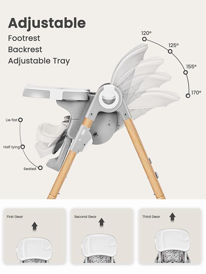 - Fully Adjustable Design: Customize for your baby's comfort with a 3 level footrest, 4 position reclinable backrest, and 3 position adjustable tray. Both the tray and footrest adapt as your child grows.