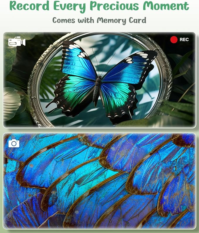 - 【Multifunctional Hand Held Microscope for Children】Support photo & video functions with storage card,connect to your computer via USB for easy transfer and deeper exploration.Handheld magnifier for kids features 6 LED lights to clearly view in all lighting conditions—great for both indoor labs and outdoor adventures.