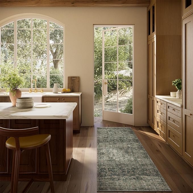 Machine Washable Rug Runners for Hallways: 2'6"x8' Kitchen Rugs Stain Resistant Non Slip Low Pile Soft Boho Carpet Runners for Hallways Bedroom Entryway Indoor Beside Bathroom Laundry Room