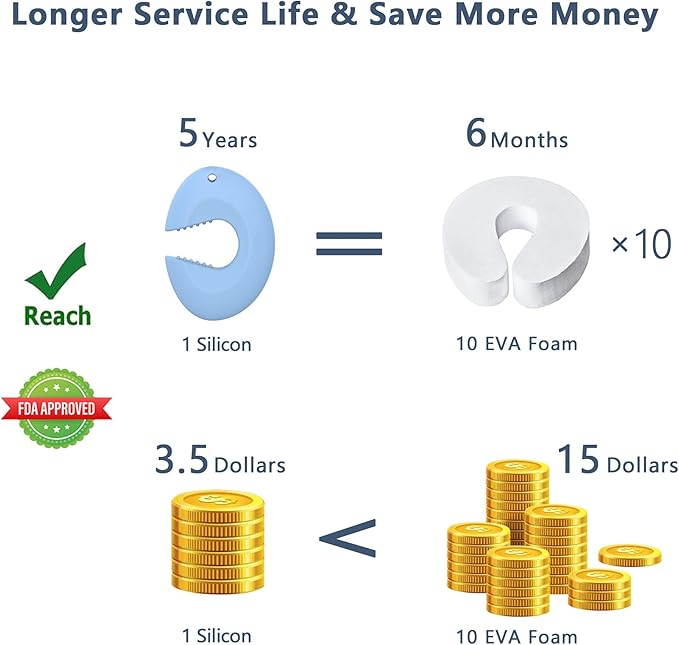 - Super Long Service Time: Neobay baby proof door stopper is made from durable silicone which can serve up to 5 years, about 10 times longer than foam door stopper. Perfect for continuously protecting the little hands and fingers of your baby, toddler, or child from getting pinched or jammed due to a door closing.