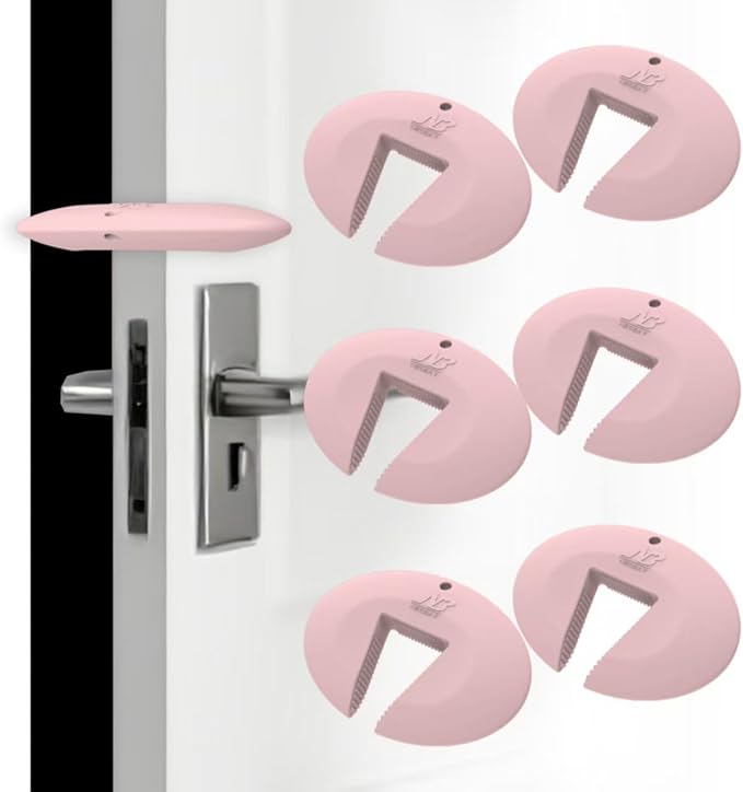 Silicone Door Pinch Guard and Door Slam Stopper, Durable Finger Pinch Guard, Prevents Pinch Injuries, Slamming Doors, Door Stopper for Kids, 6 Packs Pink.