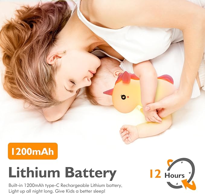 - 🦄 NICE COMPANION FOR LITTLE KIDS: The Unicorn night light a great companion for kids.If children have difficulty sleeping due to fear of the dark, the baby night light + Unicorn night lamp will be his "best companion". With a good companion, kids will no longer be afraid and gradually overcome their phobia of the dark and will be able to sleep independently again in the future, which will be a very rewarding thing for kids. Ideal as a bedside kids lamp for bedrooms or a girl's room decor. Popular for Xmas gift, Christmas gift, Thanksgving day, birthday, daily reward and New Year