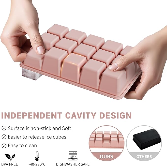 - EASY RELEASE ICE CUBE TRAY: Independent cavity design make it easier to release whiskey ice, these flexible ice cube trays for cocktails can be easily pushed from the bottom to remove big ice cubes for whiskey. Square ice cube trays has a non-sticky flexible surface, independent compartment design that ensures a quick and easy release ice cubes