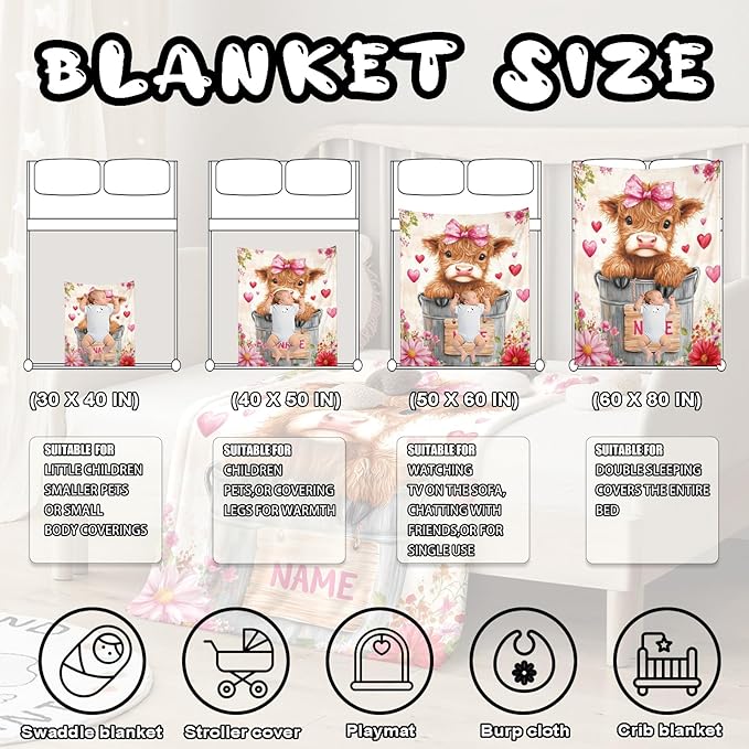 - Custom Baby Gifts Your Family Will Cherish -- Imagine the delight when parents unwrap this personalized baby blanket with name printed just for their little one. Ideal for newborns, toddlers, or kids, this blanket becomes a sentimental heirloom they’ll treasure. Click “Customize Now” and easily enter the name to create a unique custom baby blanket - the ultimate baby shower gift or birthday gift for baby girls or boys.