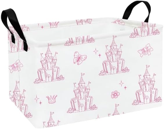 Rectangular Storage Basket Fabric Organizer Bin for Toys,Books,Clothes,Gifts,Pets-Perfect for Home,Office,Nursery,Dorm,Shelf(Rec-Shining castles)